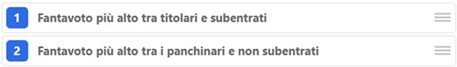 - riserve subentrate con voto valido (secondo ordine di panchina).