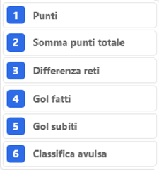 durante le fasi eliminatorie della competizione, verranno utilizzati i criteri presenti nell’immagine sotto per stabilire le posizioni in classifica.