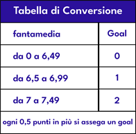 Criterio: per ogni squadra il numero di reti realizzate nel supplementare è dato da una tabella di conversione che valuta la fantamedia (aritmetica) di tutti i panchinari non subentrati in campo.