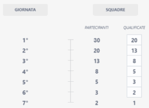 Turno dopo turno, solo le squadre con i punteggi migliori avanzeranno, secondo le modalità di passaggio indicate nell’immagine.