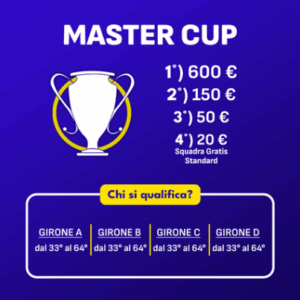 A partire dalla 23ª Giornata di Serie A le 128 squadre qualificate (dalla 33ª alla 64ª di ogni girone) si affronteranno in scontri diretti (andata/ritorno) stabiliti in modo casuale. I risultati complessivi di questi incontri determineranno i Vincitori dei Premi della Master Cup. La Fase Finale partirà dai 64esimi di finale e si concluderà con FINALE e al 3/4 Posto che si disputeranno nella 35ª giornata di serie A.